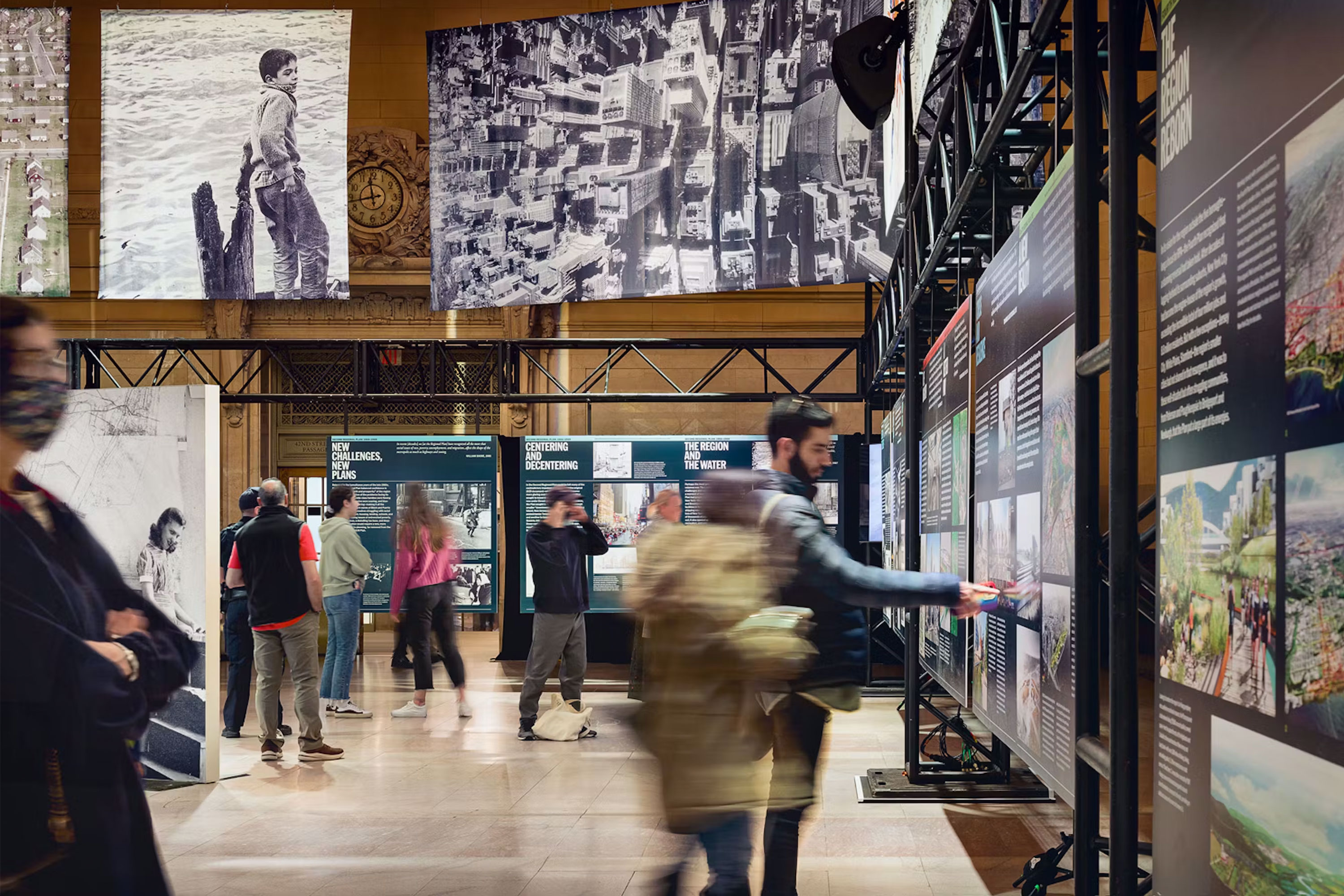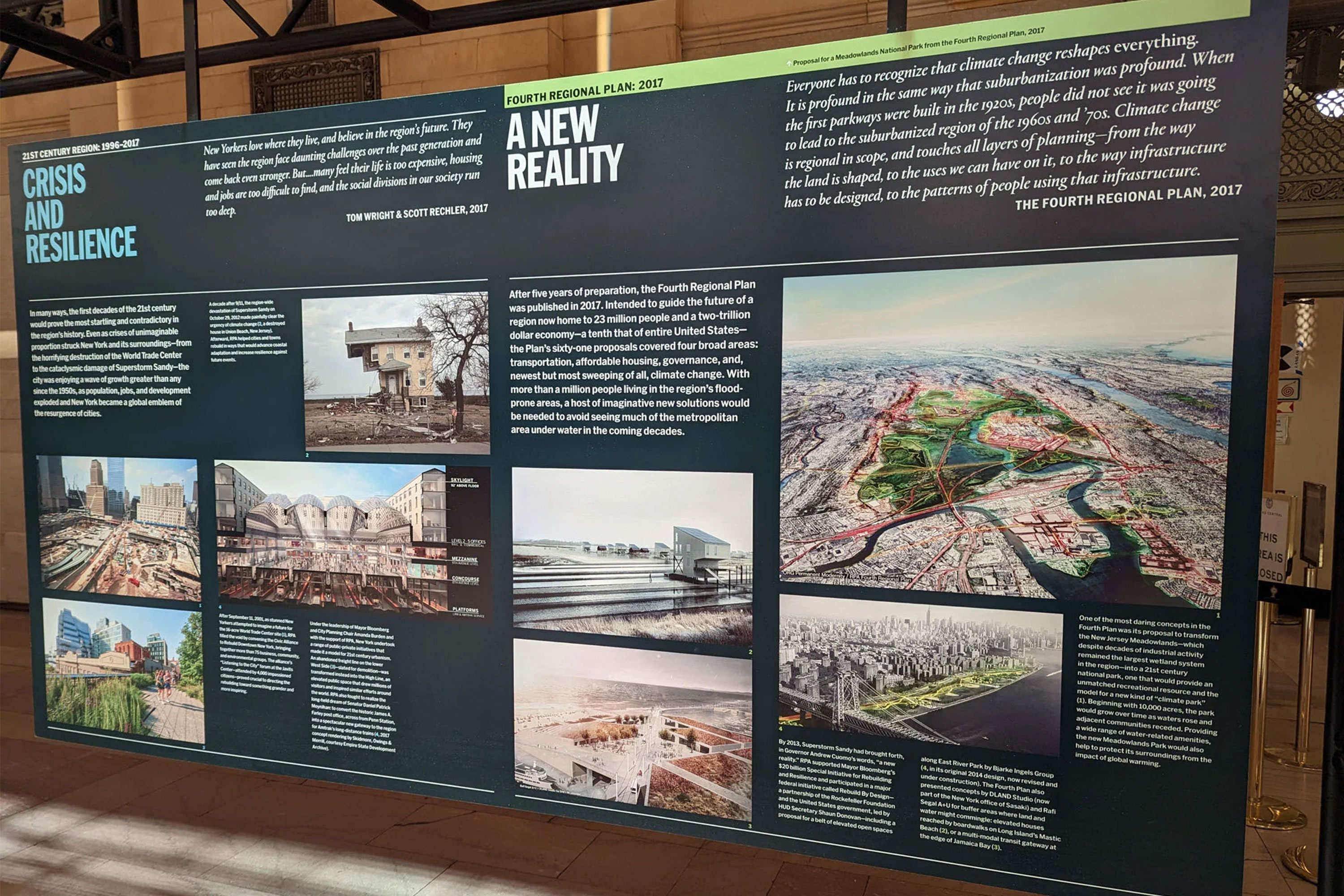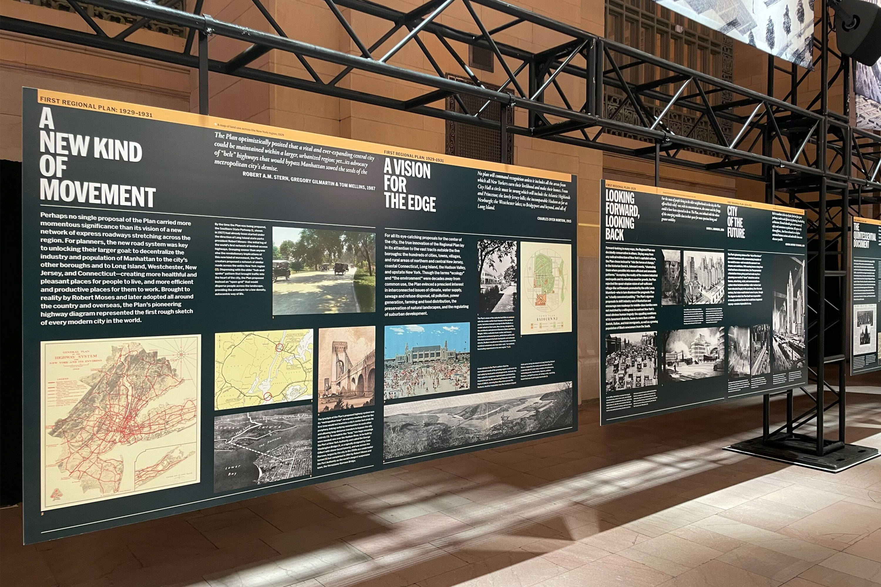 The Constant Future: A Century of the Regional Plan was a temporary exhibition in Vanderbuilt Hall, Grand Central Station which ran for 3-weeks in October 2022. The exhibition celebrated the 100th Anniversary of the Regional Plan, an indispensable source of ideas for policy makers and opinion shapers across the tri-state region and featured dramatic photomurals, large display panels and archival video. Pure+Applied worked with the team across different elements of the exhibition including; graphic identity and system design, exhibition graphics and promotional design. During its 3-week run the exhibition was visited by over 1,200 people a day. This project was a collaboration with James Sanders.